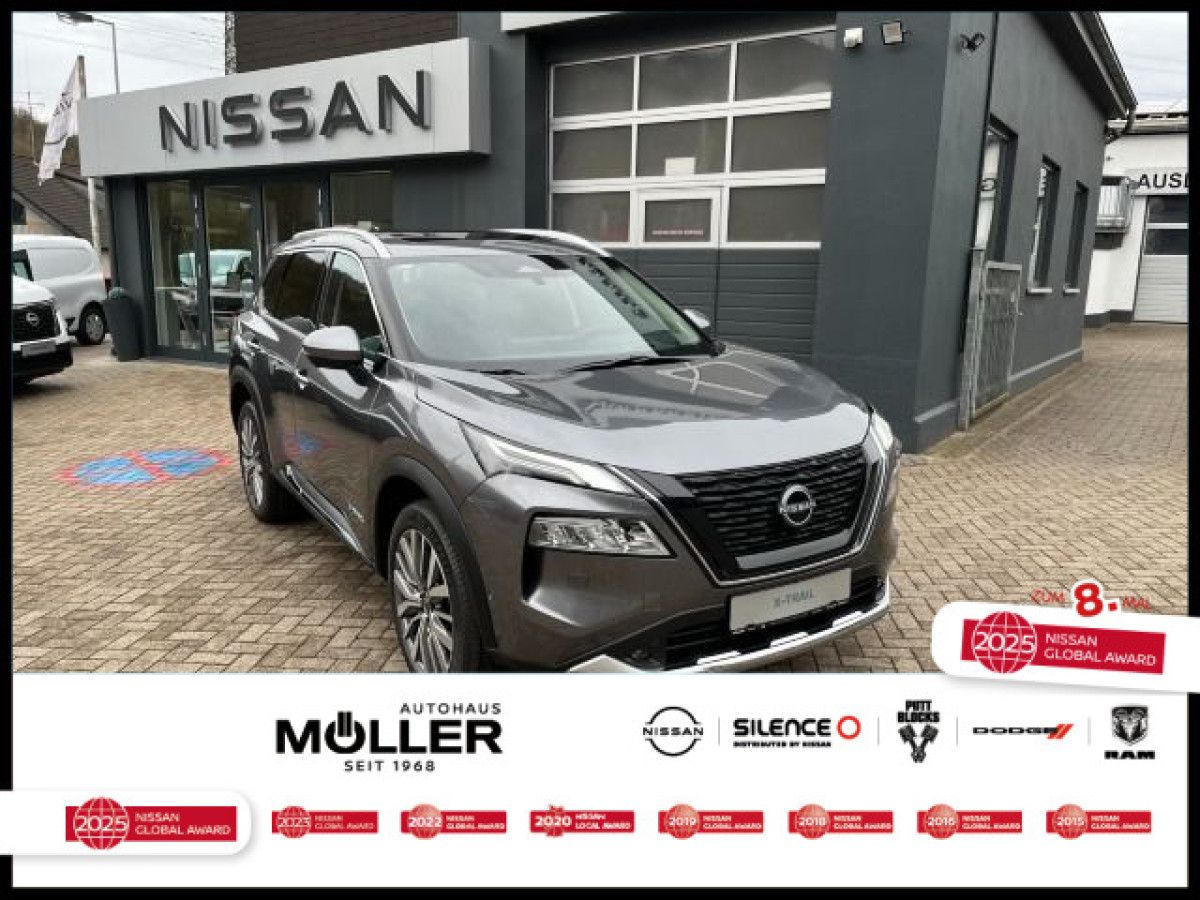 Highlights: Bose Premium Soundsystem 10 Lautsprecher; Head-up-Display; Instrumentenanzeige TFT-Farbdisplay (12,3 Zoll); Panorama-Glasdach; Lenkrad (Leder) mit Multifunktion; Ablagetasche an Vordersitzlehnen; Ambiente-Beleuchtung Mittelkonsole; Ambiente-Beleuchtung Türverkleidung vorn; Antriebsart: Frontantrieb; Service-System: Nissan Connect Services; Service-System: Amazon Alexa; Dachantenne im Haifischflossen-Design; Elektromotor 150 kW (Hybridantrieb); Fahrassistenz-System: Autonomer Lenk-Assistent für selbstständiges Spurhalten; Fahrmodusschalter; Innenraumfilter: Pollenfilter; Getriebe für Elektrofahrzeug; Handschuhfach beleuchtet; Kniepolster Mittelkonsole seitlich; Kofferraumbeleuchtung; Lenksäule (Lenkrad) höhen-/längsverstellbar; Leseleuchten vorn und hinten; Mittelkonsole mit Armlehne und Staufach; Notbrems-Warnblinkautomatik; Radstand 2705 mm; Rücksitzbank verschiebbar; Seitenschutzleisten Chrom; Sitzbezug / Polsterung: Kunstleder; Sonnenblenden mit Spiegel (beleuchtet); Steckdose (12V-Anschluß) in Mittelkonsole; Verzurrösen im Koffer-/Laderaumboden;